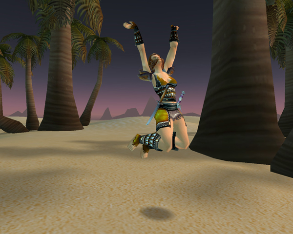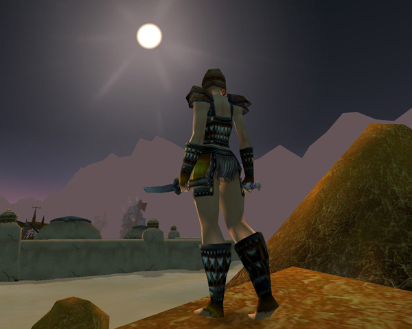 Coming out of patched leather trousers and the infamous Westfall Tunic into secondhand black Defias gear is a momentous occasion for any woman. And Chit has a weakness for those old Bandit Boots she used to own. But the first time she wore Scorpashi Leather was a revelation. Previously outrun by leaping elves and galloping men on chargers, the lady in Scorpashi leather needs only to lose her cloak to suddenly be at the front of the action. Men will vie to run behind her, bedazzled by her gently undulating rump clad in softest fur, and undecided whether it is rivalled by the delightfully revealing chestpiece.